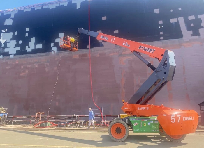 船舶,作為人類工業(yè)文明的集大成者,其龐大的身軀與復(fù)雜的曲面結(jié)構(gòu),對高空作業(yè)設(shè)備提出嚴(yán)苛要求,同時因其長期受海水侵蝕,維保是核心命題。鼎力敏銳洞察行業(yè)痛點,以高機智能平臺為載體,為船舶修造提供了一體化的綠色解決方案。